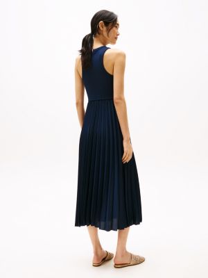 Dieses Midi-Kleid mit Plissee-Falten, figurschmeichelnder Fit-and-Flare-Silhouette und elegantem, ärmellosem Design begeistert als charmante Tagesgarderobe.