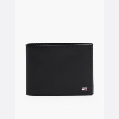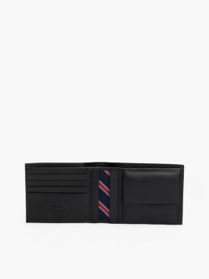 Diese Bifold-Brieftasche aus glattem Leder sorgt mit den aufgesetzten Tommy-Streifen auf dem Innenfutter für einen frischen Farbtupfer.