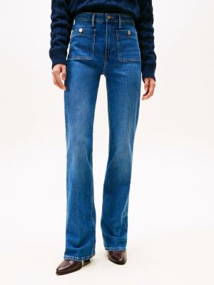 Trage einen Retro-Look mit dieser Bootcut Fit Jeans aus Denim mit Fade-Effekt und aufgesetzten Taschen auf der Vorderseite.
