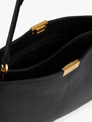Als aktueller Klassiker punktet diese Schultertasche aus schickem Narbenleder mit edlen Metall-Highlights und Branding-Details.