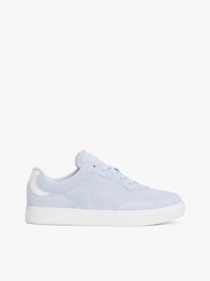 Dieser Sneaker aus strukturiertem Wildleder punktet mit edler Optik und einem geprägten Logo als typisches Detail.