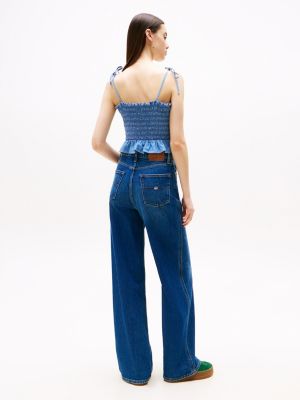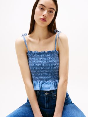 Ideal für Picknicks oder Strandtage: Dieses Slim Fit Denim-Top aus Chambray punktet mit verstellbaren Bindebändern.