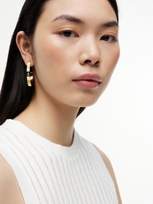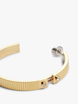 Diese Creolen mit vergoldetem Finish wirken dank eleganter, geriffelter Struktur und Kristall-Details samt Branding in der Mitte besonders raffiniert.