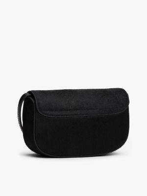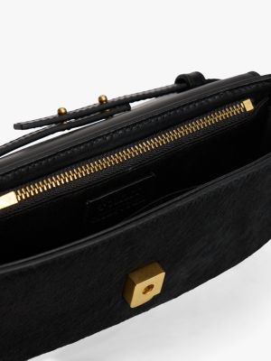 Diese raffinierte Crossbody-Tasche aus edlem Leder mit Kalbshaar-Finish und dezentem Branding ist ein echter Eyecatcher.