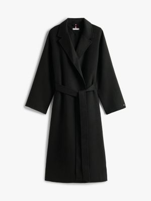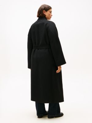 Der Bindegürtel an diesem Wickelmantel aus Wollmix mit Longline-Passform betont raffiniert deine Silhouette.