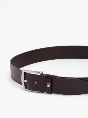 Dieser schlichte Gürtel aus besonders glattem Leder besticht durch die große Schnalle aus gebürstetem Metall und die Tommy Hilfiger Flag auf der Gürtelschlaufe.