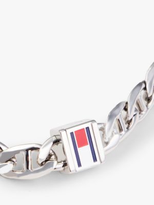 Ergänze deine Lieblingsoutfits durch dieses Edelstahl-Armband mit groben Kettengliedern und einer glatten Flag aus Emaille am Verschluss.