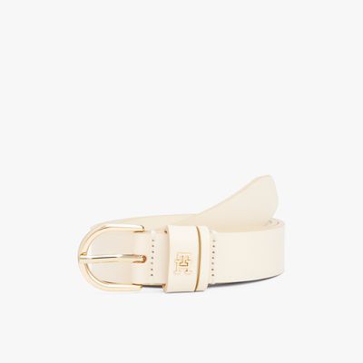 Verleihe deinen Alltagslooks raffinierte Vibes dank diesem minimalistischen Ledergürtel mit glänzender Gürtelschnalle und TH-Monogramm-Emblem.