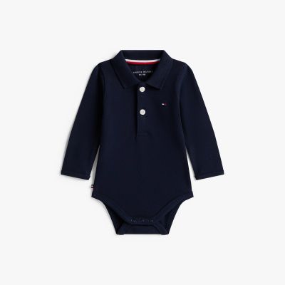 Dieser Langarm-Polo-Body aus Piqué ist ein niedliches Geschenk für Neugeborene – und ist in einem Beutel mit Branding und Kordelzug erhältlich.