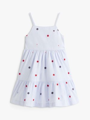 Dieses Trägerkleid aus gestreiftem Baumwoll-Popeline punktet mit frischem Look und einem voluminösen Stufenrock.