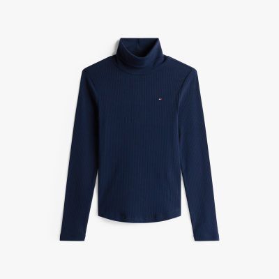 Geripptes Stretch-Gewebe gepaart mit einem Slim Fit kreiert bei diesem eleganten Pullover mit Rollkragen eine eng anliegende Silhouette.