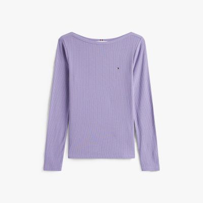 Dieses gerippte Langarmshirt mit schmeichelndem U-Boot-Ausschnitt ist eine vielseitige Ergänzung für deine Alltagslooks.