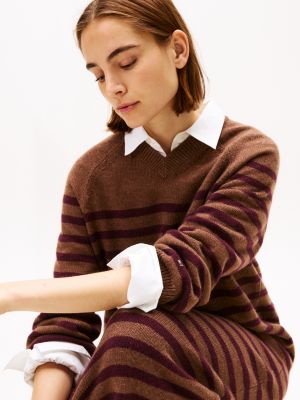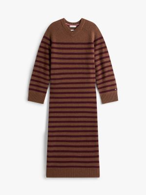 Dieses gestreifte Relaxed Fit Midi-Strickkleid aus elegantem Woll-Kaschmirmix hat einen mühelos entspannten Touch.