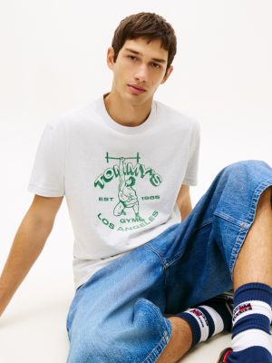 Für Dynamik in Freizeit-Looks sorgt dieses T-Shirt aus gepeachtem Baumwolljersey mit Grafik auf der Brust.