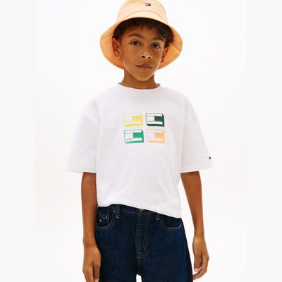 Eine 3D Flag-Grafik gibt diesem klassischen Jersey-T-Shirt aus reiner Baumwolle mit Tommy-Tape coole Vibes.