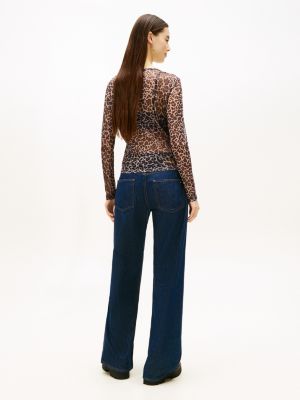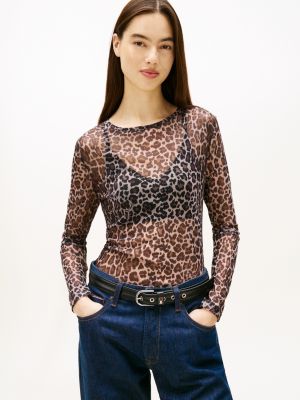 Zeig dich von deiner wilden Seite: Slim Fit und Leoparden-Print sorgen bei diesem Langarm-Top aus Mesh für smarte Vibes.