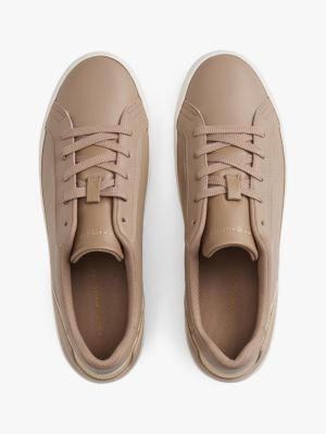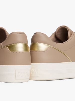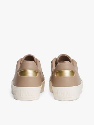 Ein Metallic-Einsatz an der Ferse verleiht diesem Sneaker aus edlem Nappaleder mit Kontrast-Gummisohle etwas Glanz.