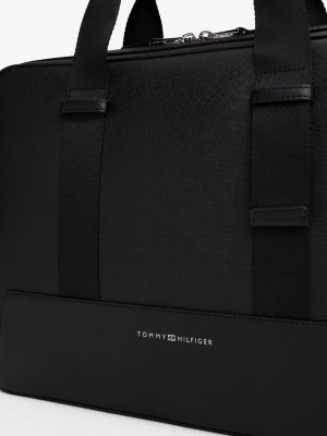 Diese strukturierte Laptop-Tasche mit Gurtband-Schulterriemen und Metallic-Logo hebt deinen Business-Look auf ein neues Level.