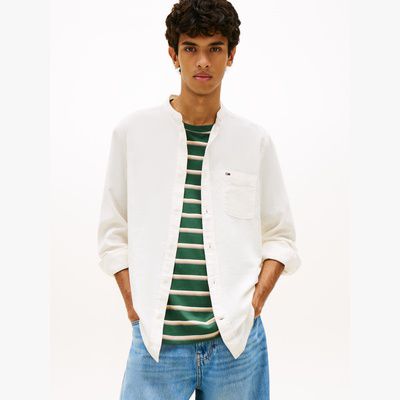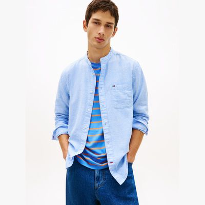 Regular Fit Hemd aus Leinenmix mit Stehkragen