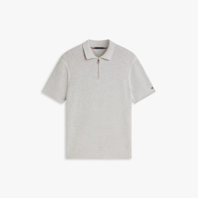 Dieses Poloshirt mit sportlichem Reißverschluss an der Knopfleiste punktet mit strukturiertem Grobstrick aus reiner Baumwolle.