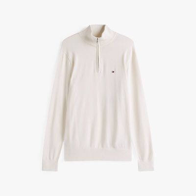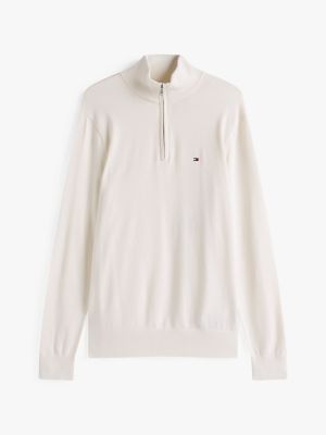 Dieser Reißverschluss-Pullover mit elegantem Mock Neck und Stickerei fühlt sich dank gekämmter Baumwolle soft und geschmeidig an.