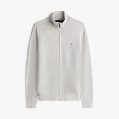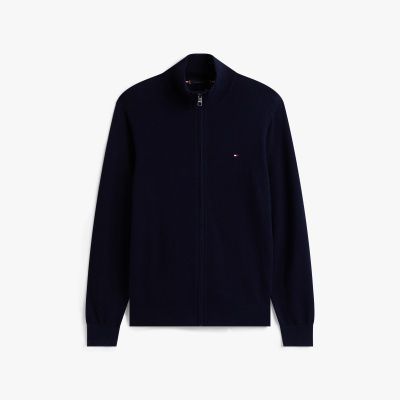 Pima-Baumwolle und Kaschmir verleihen diesem gemütlichen Pullover mit Reißverschluss edle Vibes, während eine aufgestickte Flag das Design abrundet.