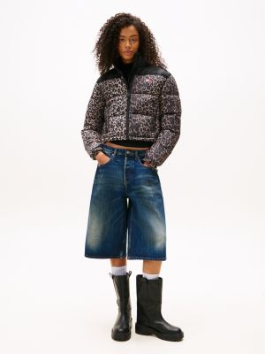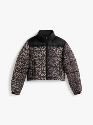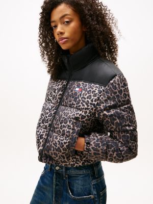 Diese aktuelle Cropped Puffer-Jacke aus strapazierfähigem, wasserabweisendem Ripstop-Gewebe sorgt mit einem auffälligen Leoparden-Print für Aufsehen.