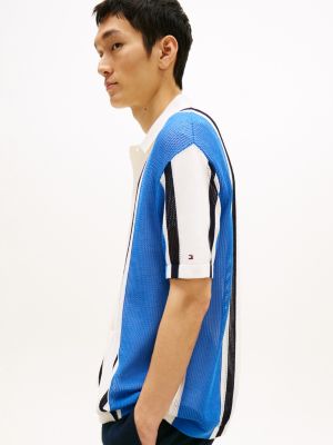Das Lochstrick-Design mit aufgestickter Flag kombiniert einen Polo-Look mit einem klassischen Kurzarmhemd zu einem Country-Club-Style.