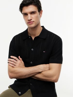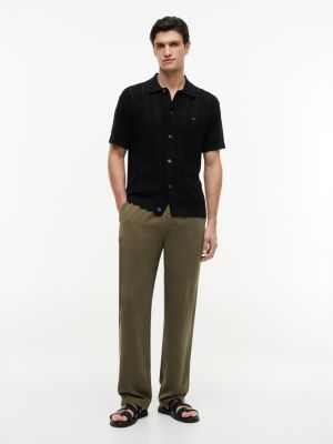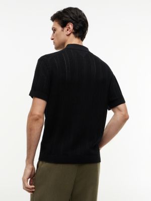 Dieses von Resorts inspirierte Kurzarm-Strickhemd ist perfekt für milde Abende im Urlaub und überzeugt durch ein hochwertiges Material mit Leinenanteil und strukturierten Pointelle-Details.