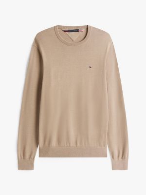 Trag diesen klassischen Rundhals-Pullover aus reiner, gekämmter Baumwolle an kühleren Tagen solo oder als oberste Lage.