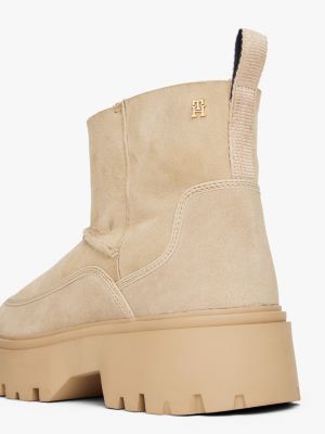 Dieser Schneestiefel aus edlem Leder hält dank seinem kuscheligen Innenfutter die kalte Winterluft ab und lässt sich zudem blitzschnell anziehen.