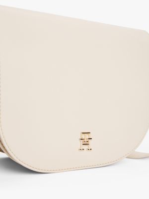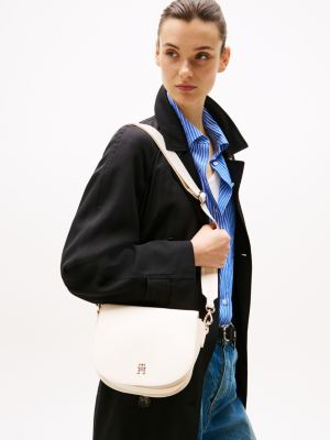 Diese Crossbody-Satteltasche mit glänzendem TH-Monogramm-Emblem und Gurtband-Riemen mit Logomuster ist die perfekte Wahl für die Freizeit.