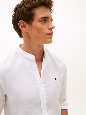 Dieses Slim Fit Popeline-Hemd aus reinem Leinen punktet mit soften Vintage-Vibes dank Grandad-Kragen und Pigmentfärbung.