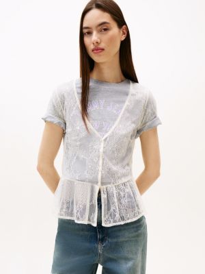 Vervollständige deine raffiniertesten Looks dank diesem Top mit Blumenspitzen-Design und ausgestelltem Cutaway-Saum.
