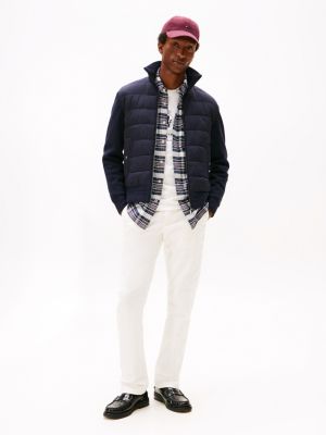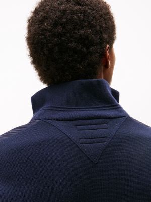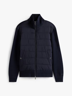 Verschiedene Strukturen verleihen dieser Reißverschlussjacke mit gestepptem Körper und Feinstrick-Ärmeln einen modernen Look.
