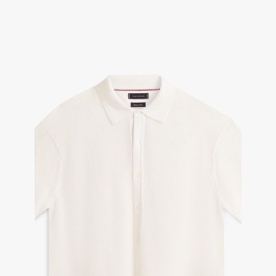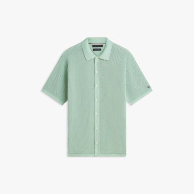 Dieses Kurzarmhemd aus reiner, mercerisierter Baumwolle im strukturierten Waffelstrick-Design hat ein Flag-Emblem und ist eine elegante Option für Lagenlooks.