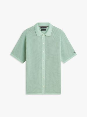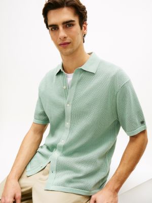 Dieses Kurzarmhemd aus reiner, mercerisierter Baumwolle im strukturierten Waffelstrick-Design hat ein Flag-Emblem und ist eine elegante Option für Lagenlooks.