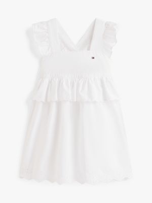 Dieses Kleid aus Popeline aus reiner Baumwolle punktet mit Details wie Rüschen an den Schultern, einer Stufe mit Bogenkante und Lochstickereien am Saum.