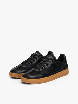 Verschiedene Materialien mit unterschiedlichen Strukturen verleihen diesem edlen Sneaker mit TH-Monogramm-Emblem an der Seite einen besonderen Look.
