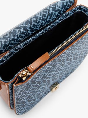 Ein TH-Monogramm-Emblem verleiht dieser Satteltasche zum Umhängen mit Print ein fühlbar strukturiertes Finish.