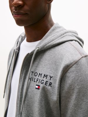 Zeig auch beim Entspannen deinen Tommy-Style in diesem Hoodie aus Baumwollmix mit Rippstrick-Bündchen und Logo-Stickerei.