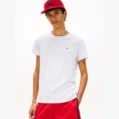 Jersey aus reiner Baumwolle und eine extra schmale Passform verleihen diesem lässigen T-Shirt mit aufgestickter Tommy-Flag aktuelle Vibes.