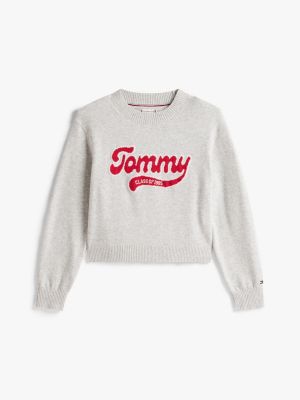 Für kuschelige Momente sorgt dieser Rundhals-Pullover im College-Stil aus Stretch-Baumwollmix mit auffälligem Intarsien-Logo auf der Brust.