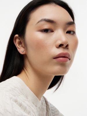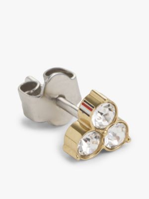 Bring durch diese vergoldeten Ohrstecker mit drei funkelnden Kristallen Eleganz in Alltagslooks.