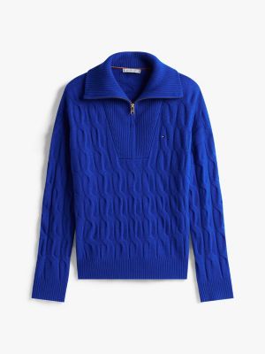 Dank softer reiner Wolle, klassischem Zopfstrick-Design und Viertelreißverschluss am Ausschnitt kannst du dich in diesen aktuellen Relaxed Fit Pullover so richtig reinkuscheln.