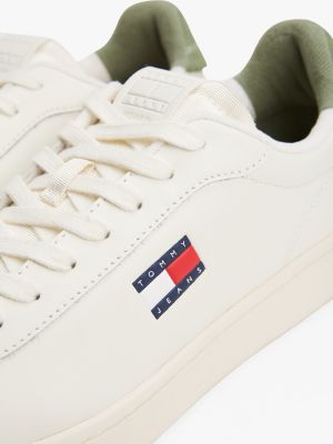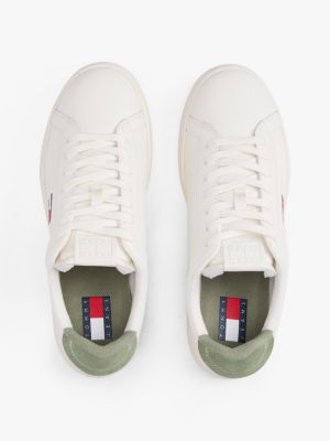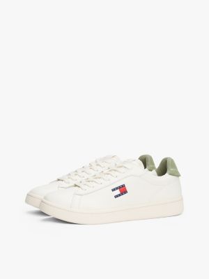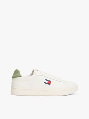 Inspirées de modèles des archives, ces baskets en cuir présentent une silhouette basse épurée et un badge Tommy.