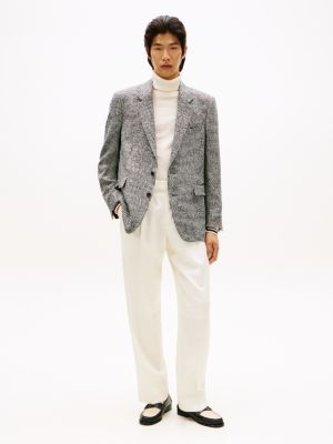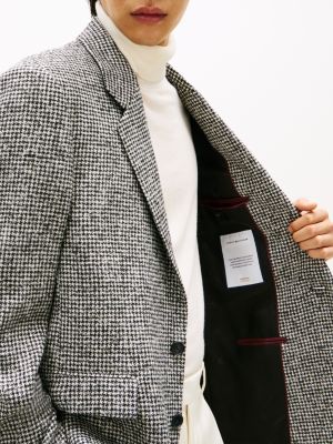 Ce blazer coupe standard droit revisite le motif pied-de-poule de manière contemporaine. L'épingle emblématique sur le revers lui ajoute une touche de style caractéristique.