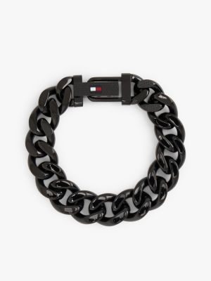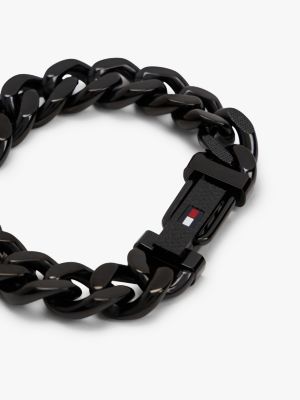 Ce bracelet ajustable est en acier inoxydable plaqué ion noir. Il se distingue par ses maillons moletés qui lui prêtent un look rebelle.