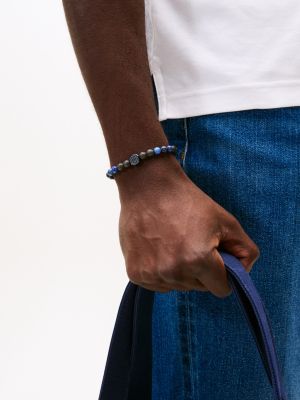 Montrez votre côté bohème avec ce beau bracelet à monogramme TH, composé de perles semi-précieuses en lapis-lazuli et d'autres renforcées de fibres de carbone.