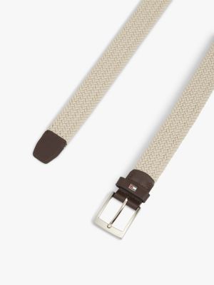 Cette ceinture élastique tressée à boucle en métal brossé apportera une note sportive et décontractée à vos tenues casual.